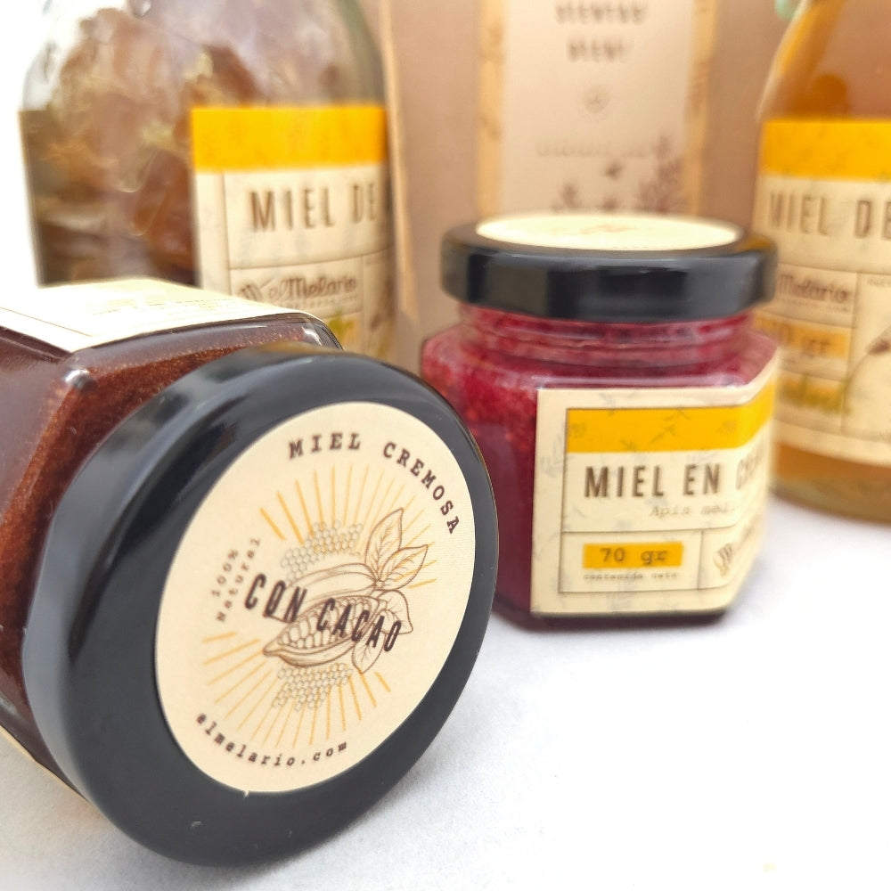 - Cuatro Mieles Cremosas con diferentes ingredientes: Mora, Maracuyá, Cacao y Jengibre , 70gr cada una.