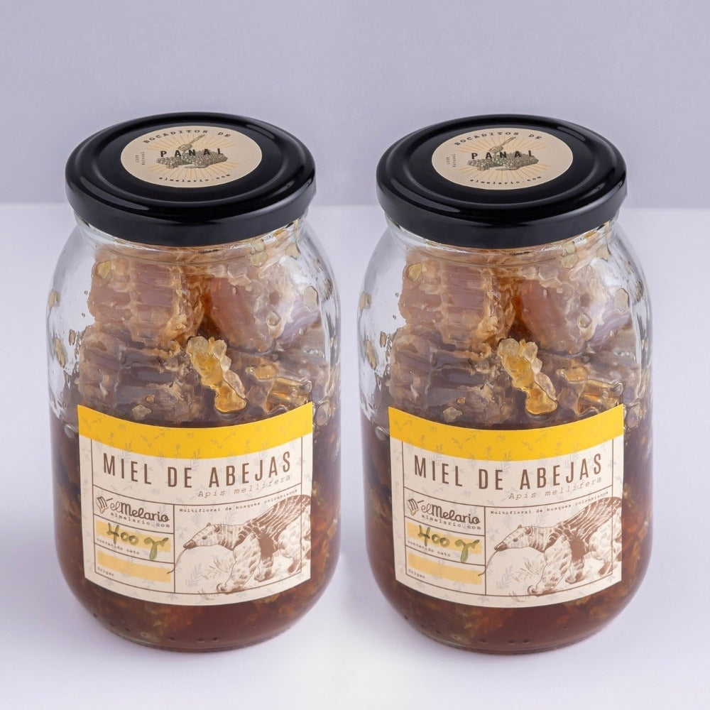 La miel en su "EMPAQUE NATURAL", el panal. Adquiere 2 frascos con trozos de panal repletos de miel, para masticar y disfrutar. En envase de vidrio.